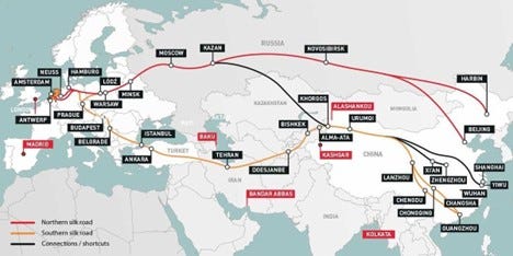As I write this, running from Lanzhou-Urumqi, totaling 1776 km and running parallel to the electrified Lanxin passenger railway completed in 2014. With the new high-speed route completed, the Lanxin passenger railway will be transformed to freight rail servicing the Eurasian Continental Landbridge, with goods flowing 11,000 km from East China to Rotterdam.