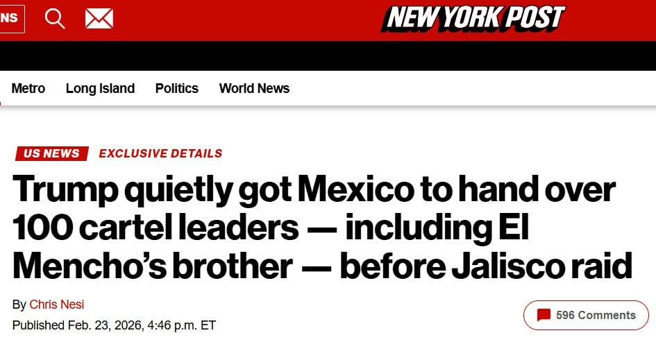 Separate reporting by New York Post said the Trump administration quietly secured the transfer of roughly 100 cartel leaders from Mexico to US custody prior to the operation targeting El Mencho. No additional details about the nature or scope of US coordination was provided.