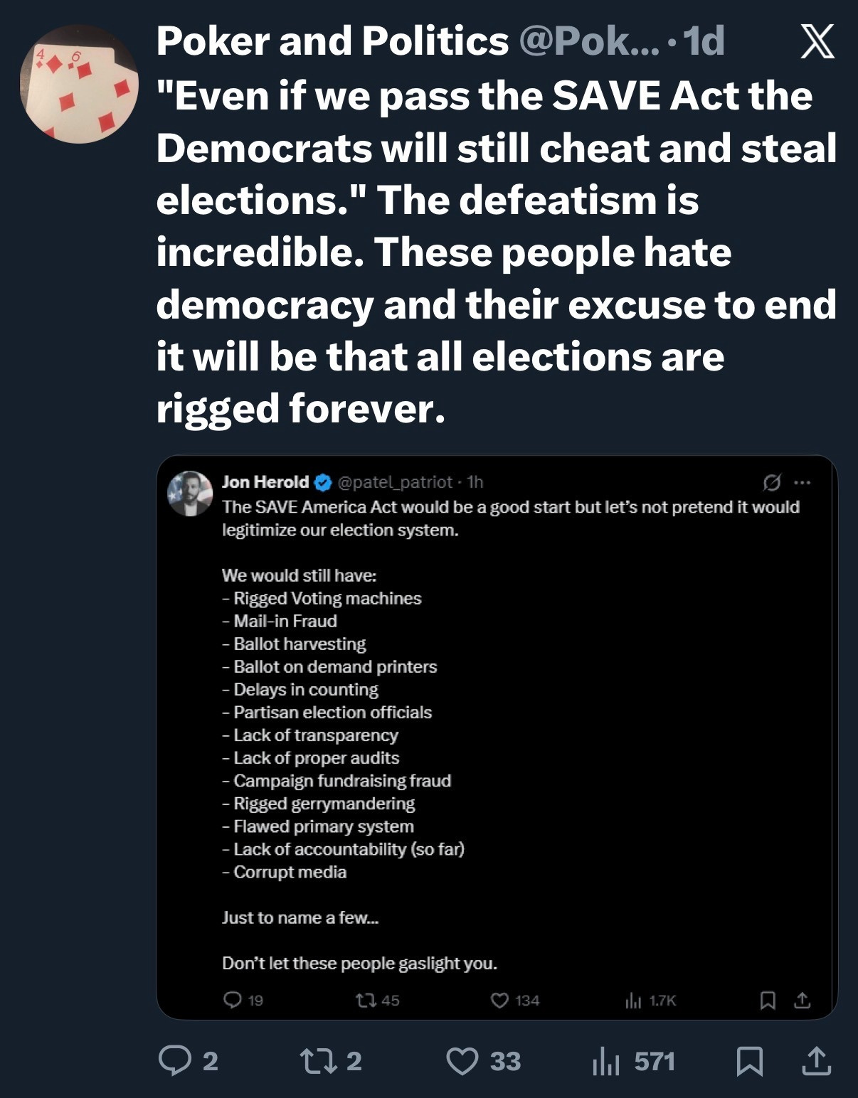 That account’s introduction of itself is that Lee Harvey Oswald acted alone. Okay. Also, Jon Herold never mentioned Democrats. The uniparty left loves to make everything about themselves.
