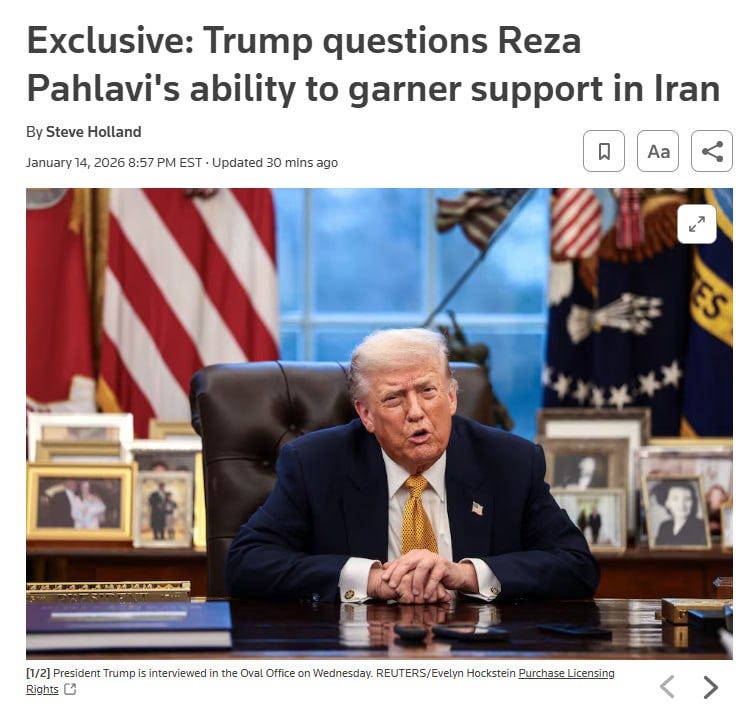 And just like with Maria Hakuna Matata, President Trump dismissed the idea of installing Deep-State-darling Reza Pahlavi as the leader of Iran.