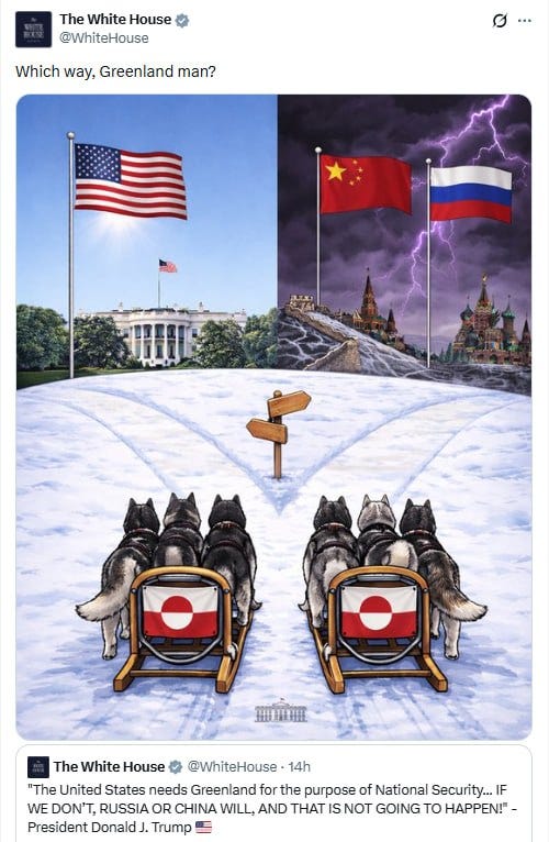 President Trump applauded the move, and now I see the game he is playing. He’s using the threat of Russia and China to get NATO to divert resources away from Eastern Europe (Ukraine) and to Greenland, where they will be utterly useless.