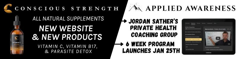 Jordan Sather’s Conscious Strength all natural supplement line has a new website as well as 3 new products, a whole food Vitamin C, Para~Shite parasite detox support, and Apricot Seed Extract with Vitamin B17. Plus Sather is launching a 6 week program on Jan 25h in his private coaching group with training on nutrition, supplementation, and corrective exercise through weekly live calls and 70+ exclusive videos. Full MAHA ahead!