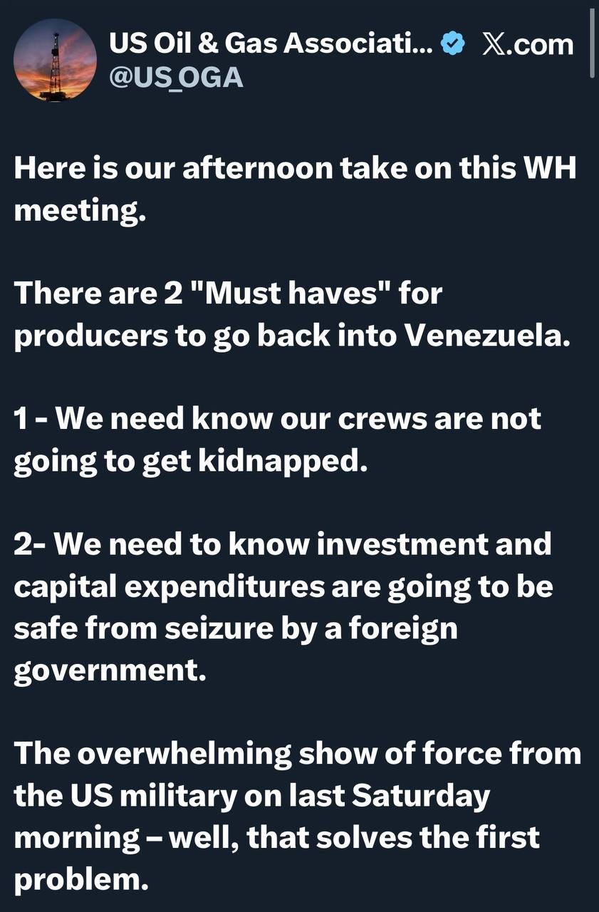I provided my best guess, and stand by what I said. However, I have since stumbled onto new information that I think further validates the move, and it has to do with Scott Bessent’s announcement to imminently lift the sanctions President Trump imposed on Venezuela during his first term, so that oil sales could begin resume, as normal.