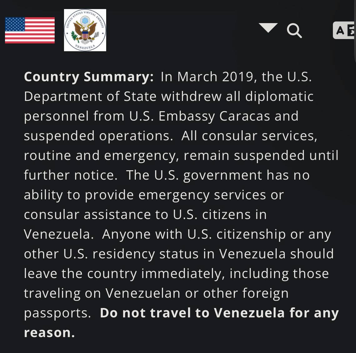 But here’s the thing. This isn’t a CHANGE. Venezuela was at Level 3 since the mid 2010s, and the US closed its embassy in Caracas in 2019, changing it to L4 equivalent. It’s been there and regularly “reissued” ever since.