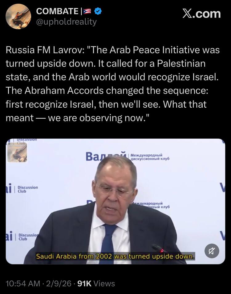 Sergey Lavrov explains how the Abraham Accords have been used to subvert the Saudi Peace Initiative of 2002 (which required a two-state solution).