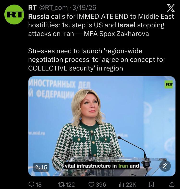 Maria Zakharova (on behalf of Putin and the Kremlin) demanded that Israel stop attacking Iran immediately.