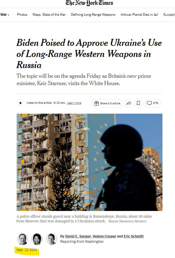 Please note that when Ritter refers to "Saturday," he means September 14, 2024. I made this first clip longer, because Ritter explains some technical information about the missiles, including user interface, that emphasizes the direct role that the American military would need to play in their use against Russia— something that Putin explained, himself, when addressing the public on the situation.
