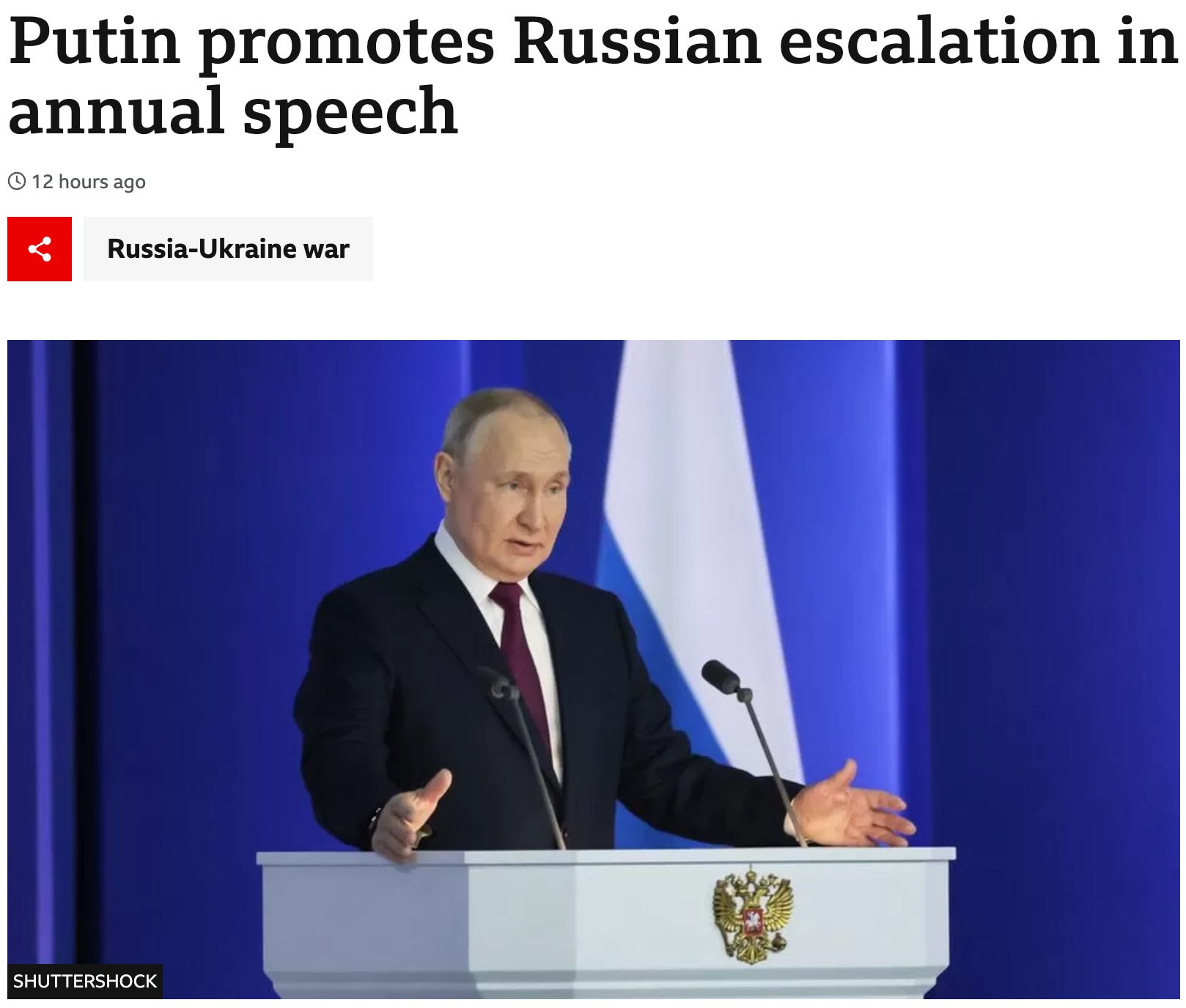 Our Take: “I thought about putting together a whole collage of the Media Industrial Complex’s portrayal of what happened the Tuesday of President’s week in the United States, where, a seeming world away, two men gave ‘dueling’ addresses about the immediate futures of their respective nations, and of each other’s escalatory engagements, but you can guess what they thought of it.