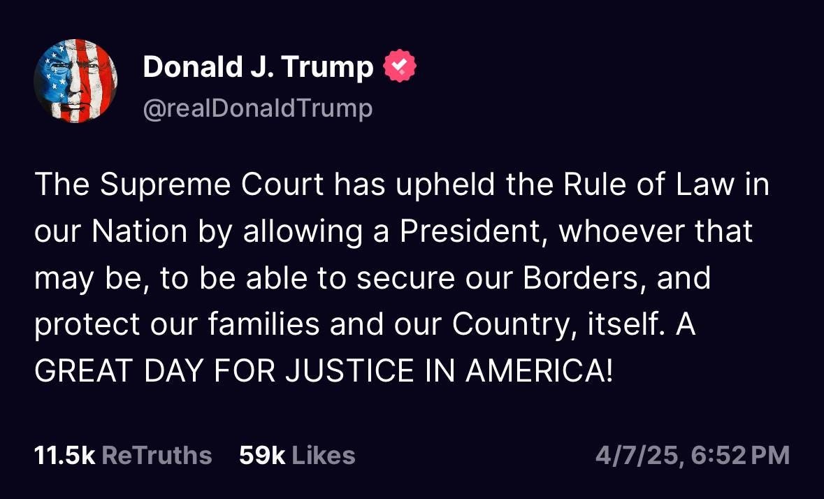 But the Y-Chromes on the High Court said they can’t do that, because the Executive’s powers under the Alien Enemies Act are pretty off limits for the courts – judicial review is only permitted for habeas claims (wrongful detention). Now check out this bit from Sotomayor: