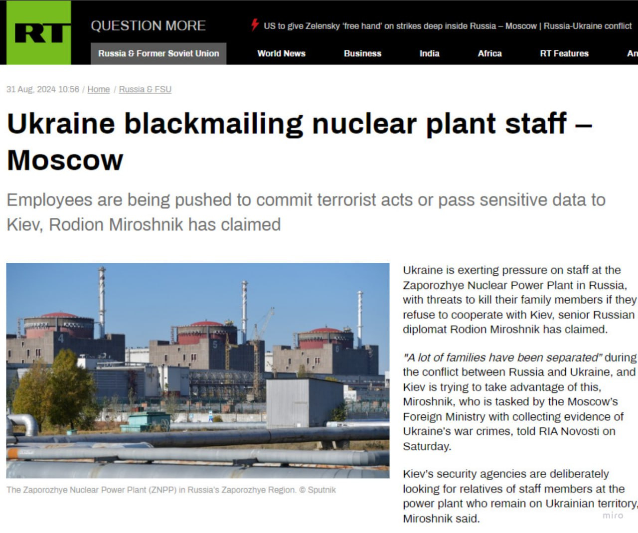 Since that has failed, now the NATO Nazis are allegedly threatening to kill the families of Ukrainian workers at the plant, unless they pass sensitive information to NATO forces. (Churchill would be proud.)