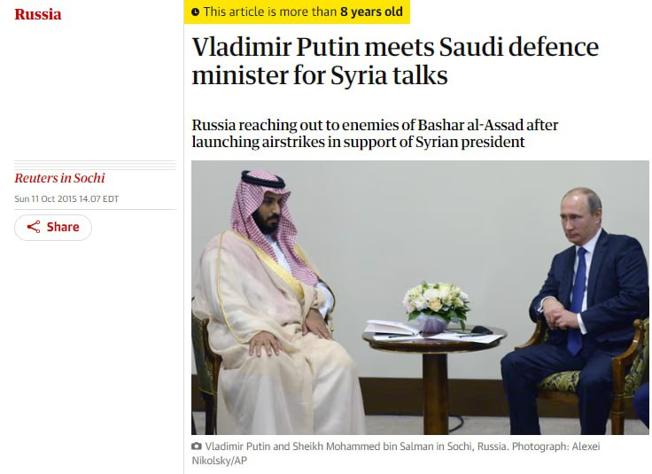 Let's take a look and go find that news story... given the time frame, our boy, Mohammed bin Salman, would have been the Saudi Defense Minister, and nowhere near a household name.