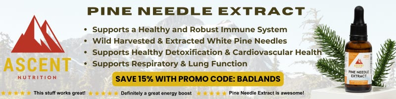 But before we get onto the Brief, we want to introduce you to a new Sponsor of the Badlands Substack: Ascent Nutrition, who are offering the Badlands audience 15% off their Pine Needle Extract using the promo code: “Badlands.”