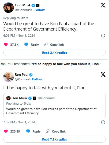 Paul, known for his criticism of federal policies such as the Federal Reserve, mass surveillance, and the military-industrial complex, has expressed openness to the idea. Responding to Tesla CEO Elon Musk on social media platform X, Paul said he would be “happy to talk” with Musk about joining a potential Department of Government Efficiency.