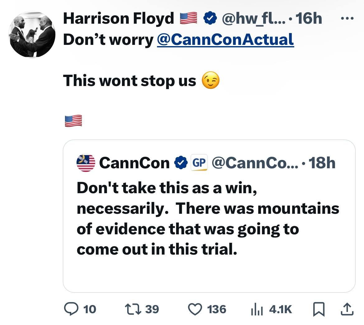 Until then, there will be no further movement in McAfee’s courtroom. While Brian Lupo cautioned on X that this shouldn’t be taken as a win — because of all the evidence expected to come out at trial — RICO defendant Harrison Floyd immediately set him straight: