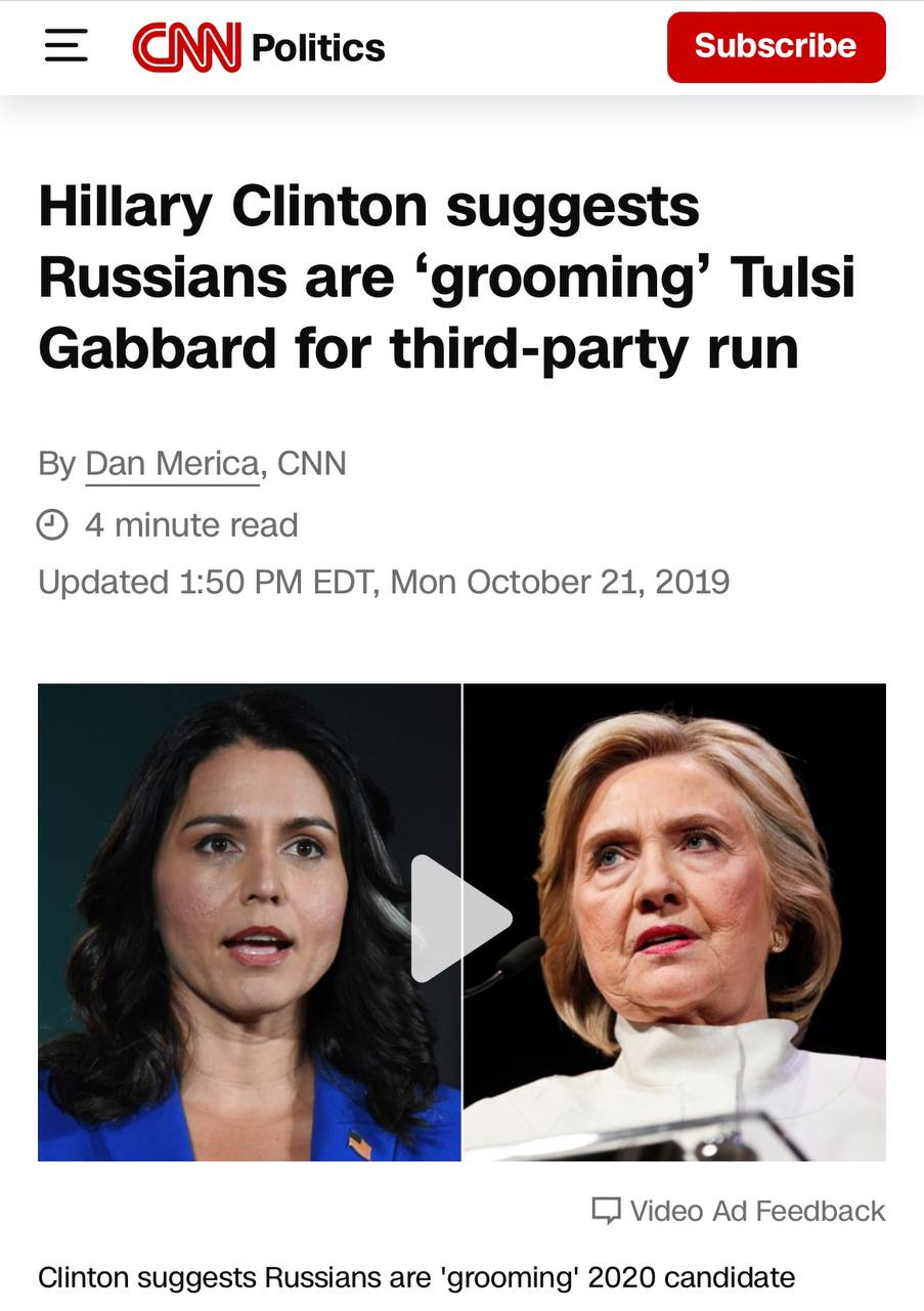 The origination of claims that Gabbard is disloyal to the United States is none other than Hillary Clinton. Clinton began this angle of attack on Gabbard during the 2019 democrat primary election.