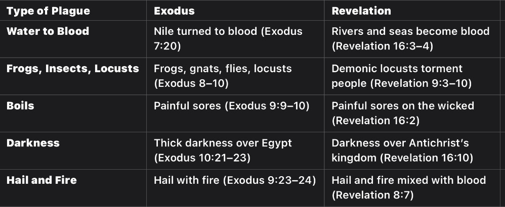 Are you aware of the similarities between the plagues in Exodus and the prophecies Wrath of God, as foretold in Revelation and the writings of the Old Testament Prophets?