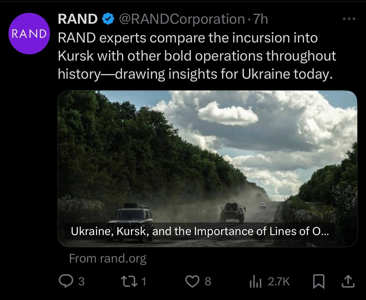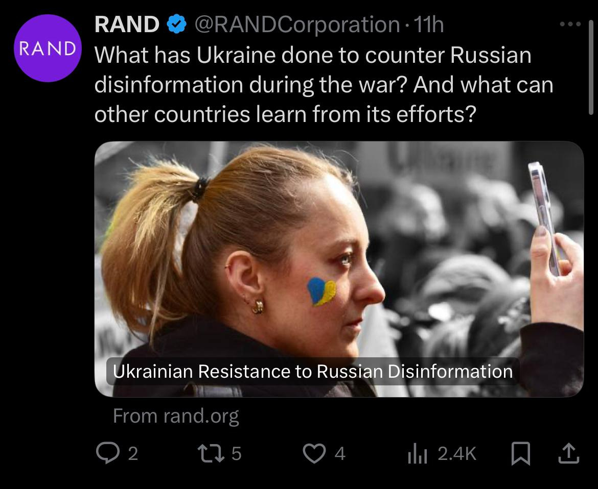 That brings us to the RAND Corporation— one of the great villains of the modern era. Let’s take a look at some of their recent posts on X: