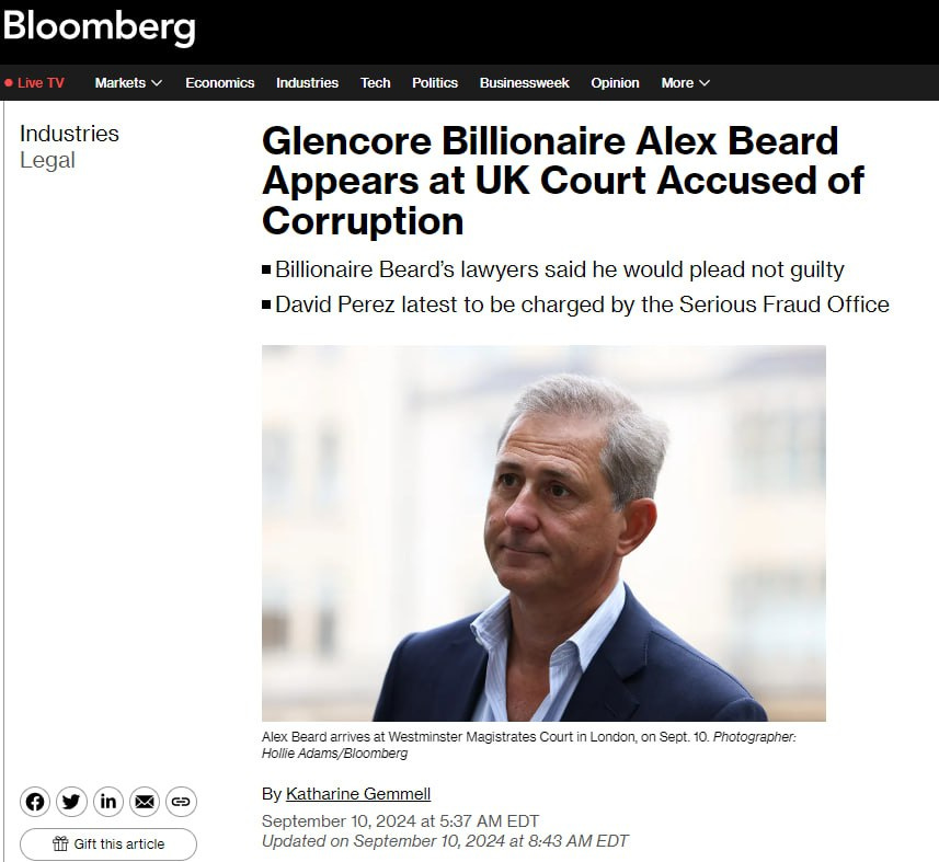 The timing of this is pretty suspect, with Trump being shot at, again. And if Maduro is such a bad guy, then why are all the other bad guys trying to kill him? It wouldn't have anything to do with those civil action lawsuits he brought against those 40 oil executives in US court back in 2018, which seem to have resulted in materials used by the Trump administration to go after more oligarchs worldwide, and was also likely tied to the very recent indictments brought against former Glencore CEO Alex Beard? (I don't want to be accused of being a conspiracy theorist, or anything.)