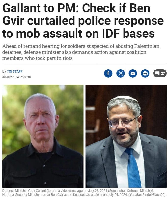 Seek guidance from God—not the secular authorities in Tel Aviv—and you will find yourself on solid footing, both spiritually and morally. I expect things to get a lot darker and more obscene, in the days ahead. For now, it appears that a civil war is about to break out inside Bibi Netanyahu's cabinet—between military men like Yoav Gallant and Jewish Mystics like Itamar Ben-Gvir—and the crux of the issue is... the right to brutally rape male prisoners?