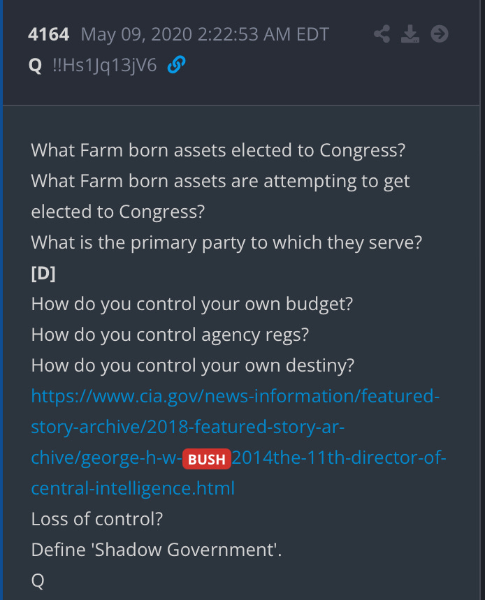 The ‘Farm’ is a reference to the CIA, which was doing everything they could to elect CIA members to Congress for oversight and budget controls, thus removing the oversight powers of Congress by infiltration. The CIA was creating a “shadow government,” unaccountable to anybody. Bush himself was a Congressman for a time, and I think that helped him convince Congress to push CIA reforms back during the 1976 investigations, rather than criminal charges, which is Washington D.C’s way of sweeping things under the rug.