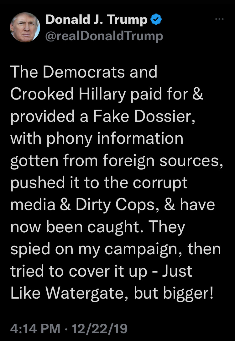 Trump mentioned the FBI and named some specific people. It was discovered that two people mentioned in this Trump tweet actually talked with each other about an Obama PDB.