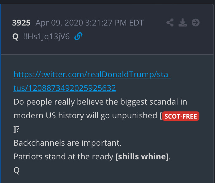 Here’s the Trump post on Twitter from that Q drop: