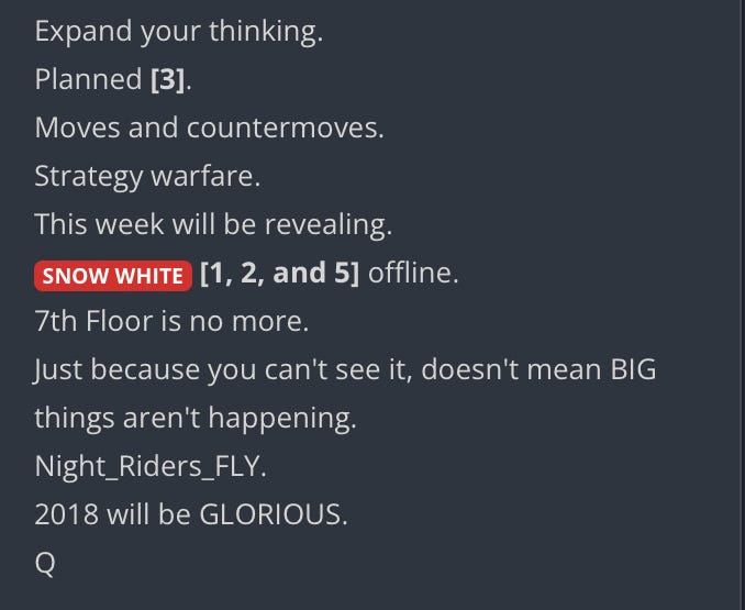 Here’s part of Q drop 577 on Jan 21, 2018: