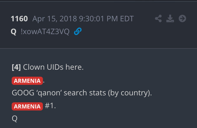 The reason that Armenia was at the top of the Google search stats for qanon is because the CIA was using these computer systems to fight a narrative war against Q and the millions of anons who were waking up to the corruption.