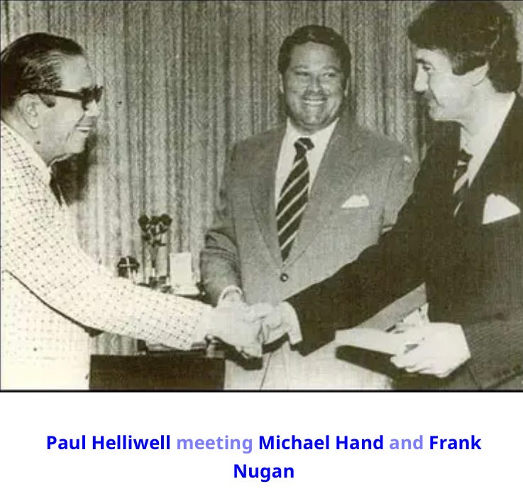 Michael Hand’s partner was Frank Nugan, who had been found dead of a suspicious suicide. That kicked off the bank’s collapse and launched multiple investigations. Guess whose name was found on documents on Nugan’s body at his death? None other than William Colby, who was the ‘legal adviser’ for the bank. What a coincidence.