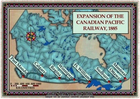 The lack of progress on Canada’s rail by 1878 had resulted in renewed disenchantment on the part of British Columbians, who demanded once more for annexation into the USA, resulting in Sir John A. Macdonald’s “National Policy of 1878-1885,” which forced the construction of Canada’s own trans continental rail (with the inaugural train cars arriving in BC’s Port Moody from Montreal on the 4th of July, 1885).