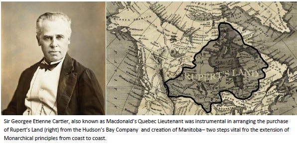 On July 18, 1868, the Hudson Bay territories (aka: Rupert’s Land) were sold to Ottawa under an operation led by Sir Georges Etienne Cartier, who stated,
