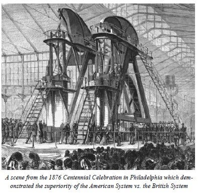 By the time of the 1876 Centennial Exhibition in Philadelphia, the American System of Political Economy had resulted in the greatest explosion of wealth in the United States, and became a model for the whole civilized world seeking to break free of British colonial hegemony.