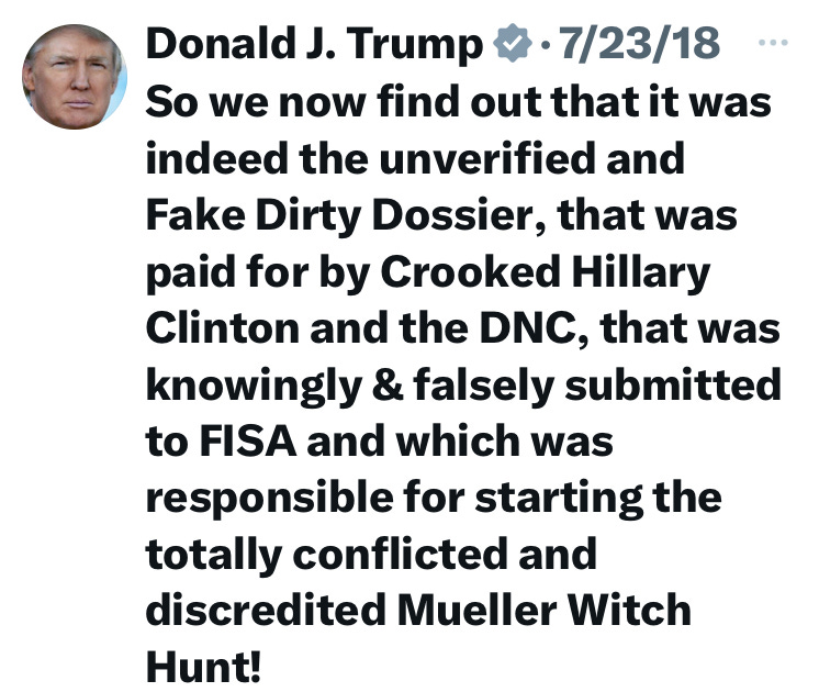 The enemy’s entire plan was relying on the veracity of the “Steele dossier”.