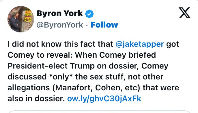 The dossier that Comey was so eager to enter into the narrative battlefield against Trump was now something that he was trying to distance himself from.