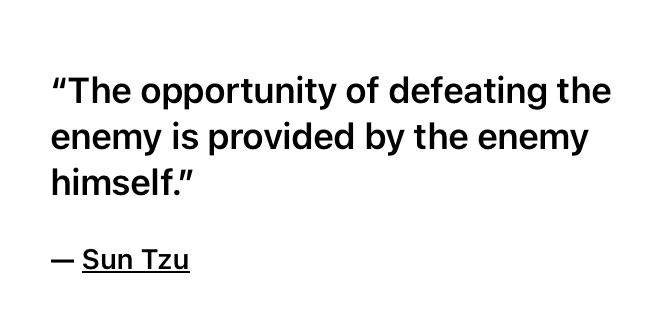 Trump continually “opens the front door” to the enemy and uses himself as BAIT in order to lead the enemy into one trap after another. Trump allows them to deploy their own strategy and plan against him. He waits until they are fully committed before pulling the rug out from under them. Timing is everything.