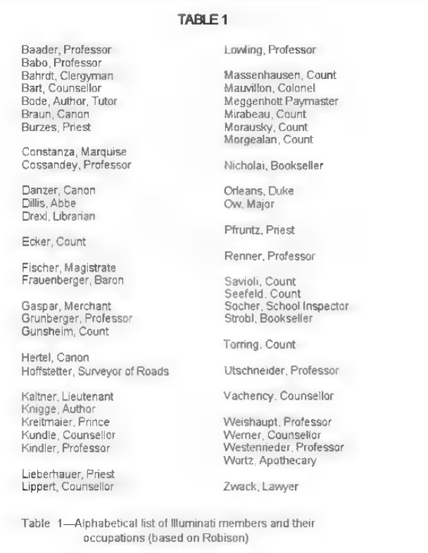 It is important we are all on the same page, so I will take time to make sure we are not thinking about separate groups. The group in question is the 18th-century Bavarian Illuminati of Adam Weishaupt and is not to be confused with the Alumbrados of 15th- and 16th-century Spain or its cheap modern imitation.