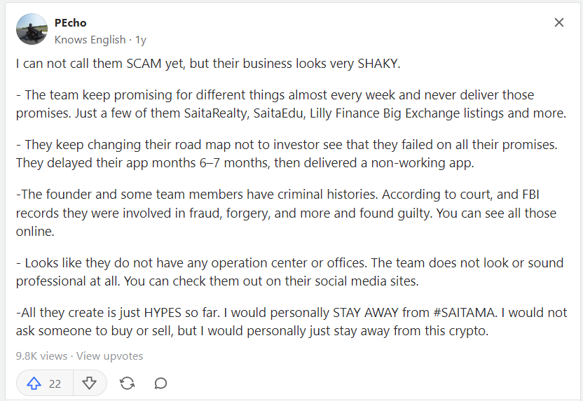 “I don't know the extent of the investigation, but 100% there are authorities looking into it–probably for the magnitude of the market cap of the project. In November 2021, it was close to 8 billion market cap, and the deployer is connected to multiple rug pulls.”