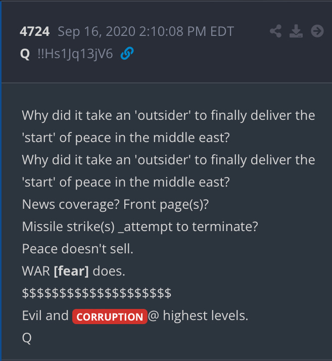 Speaking of Trump, he’s quoted in a Q post on this subject: