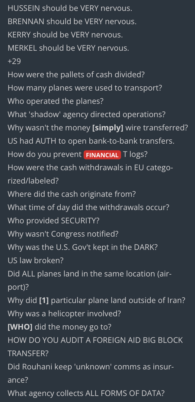So good! Investigative journalism is not dead. I hope people truly appreciate how unique and difficult it is to expose what you’ve exposed. To sift through the garbage and find the hidden truth. My favorite part is how Obama felt the need to complete the arms deal with Iran that was interrupted by Iran taking 52 Americans hostage in 1979. Must have been weighing on him that we took their money and didn’t deliver the weapons. 😂 He had to do the right thing. 😂