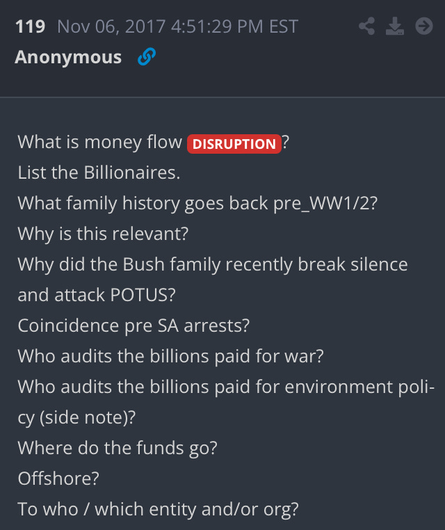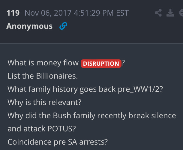 Who was it that had their money flow disrupted? Prince Alwaleed was arrested in Saudi Arabia the day before this Q drop. Was that just a coincidence?