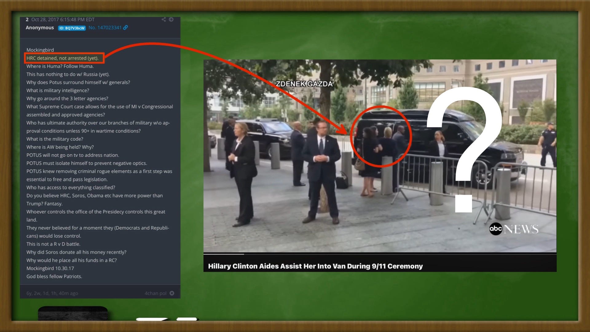 This drop is pretty loaded, but as I said, I am not doing high-level reviews here, so I wanna focus on a couple of the larger themes in this drop—the first of which being Q immediately clarifying that Clinton had not been arrested, only detained.