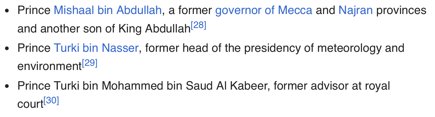 To a finer point, all of these people held power in Saudi Arabia; they all had a hand in the direction and rule of the country. And they were all taken down. That is ultimately the point Q is making here.
