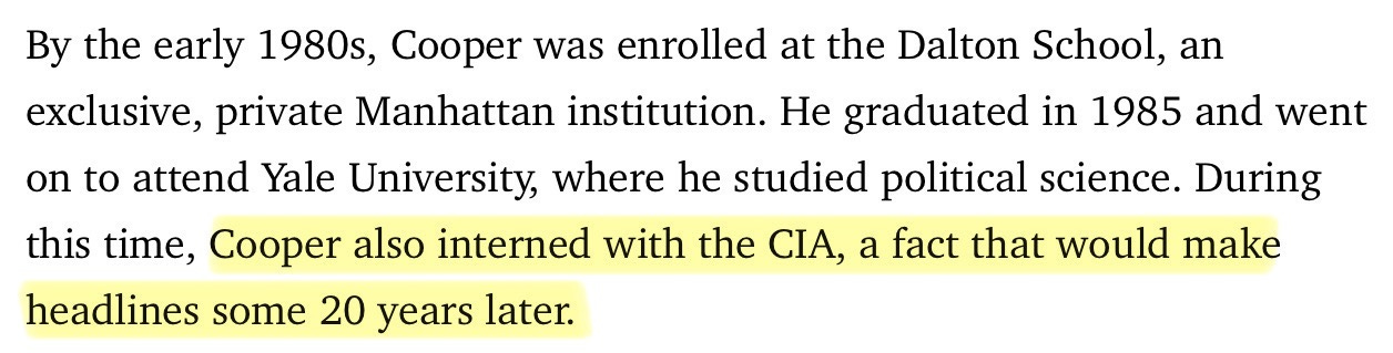 He was an intern at the CIA. I’m sure there’s nothing to see there … *rolls eyes*