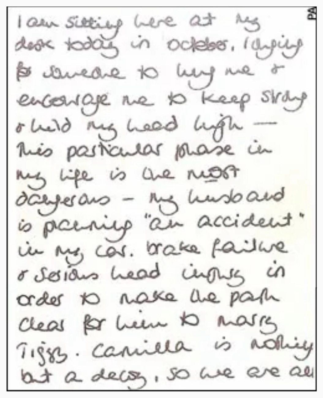 Perhaps Diana was about to spill the beans on the Royal Family, and this is why she was taken out. It is important to note that she wrote a letter to her butler discussing her concern that Prince Charles would use a car accident to remove her.
