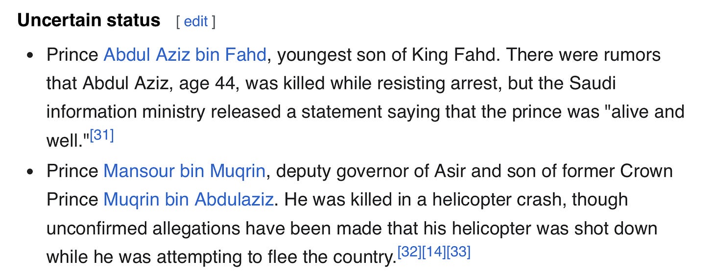 The answer to that question is two-fold. Prince Aziz bin Fahd was reported to have been killed while resisting, however, those reports were later refuted. So let’s focus on the other Royal Family member that we know for a fact was killed, and that is Prince Muqrin, the son of former Crown Prince Abdulaziz.