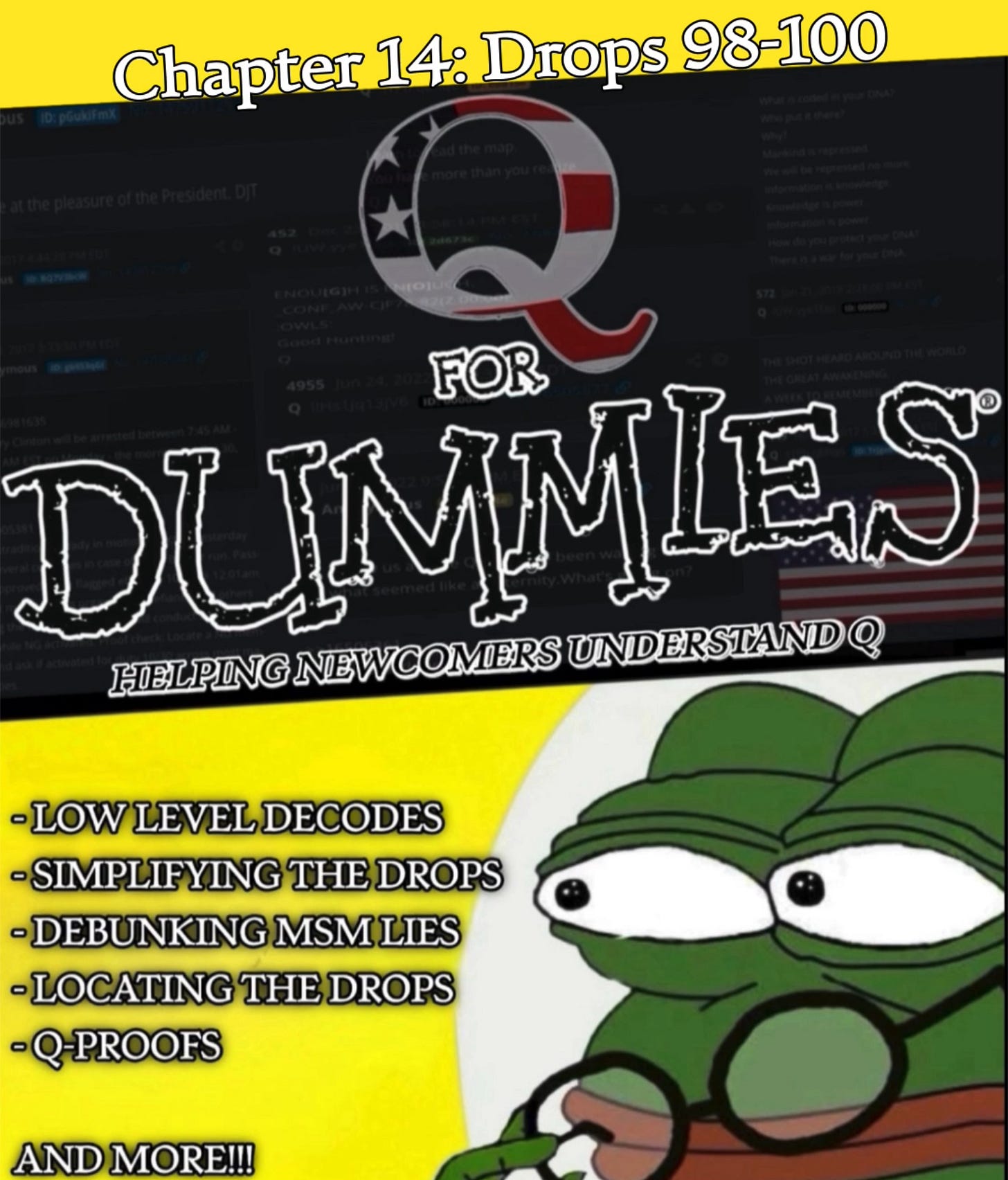 Frogs and frogettes, welcome to Chapter 14 of Q for Dummies! Today, we will be covering drops #98-100, and lemme tell ya, I found some pretty dasting correlations that may or may not end up becoming very fine examples of “future proves past”!