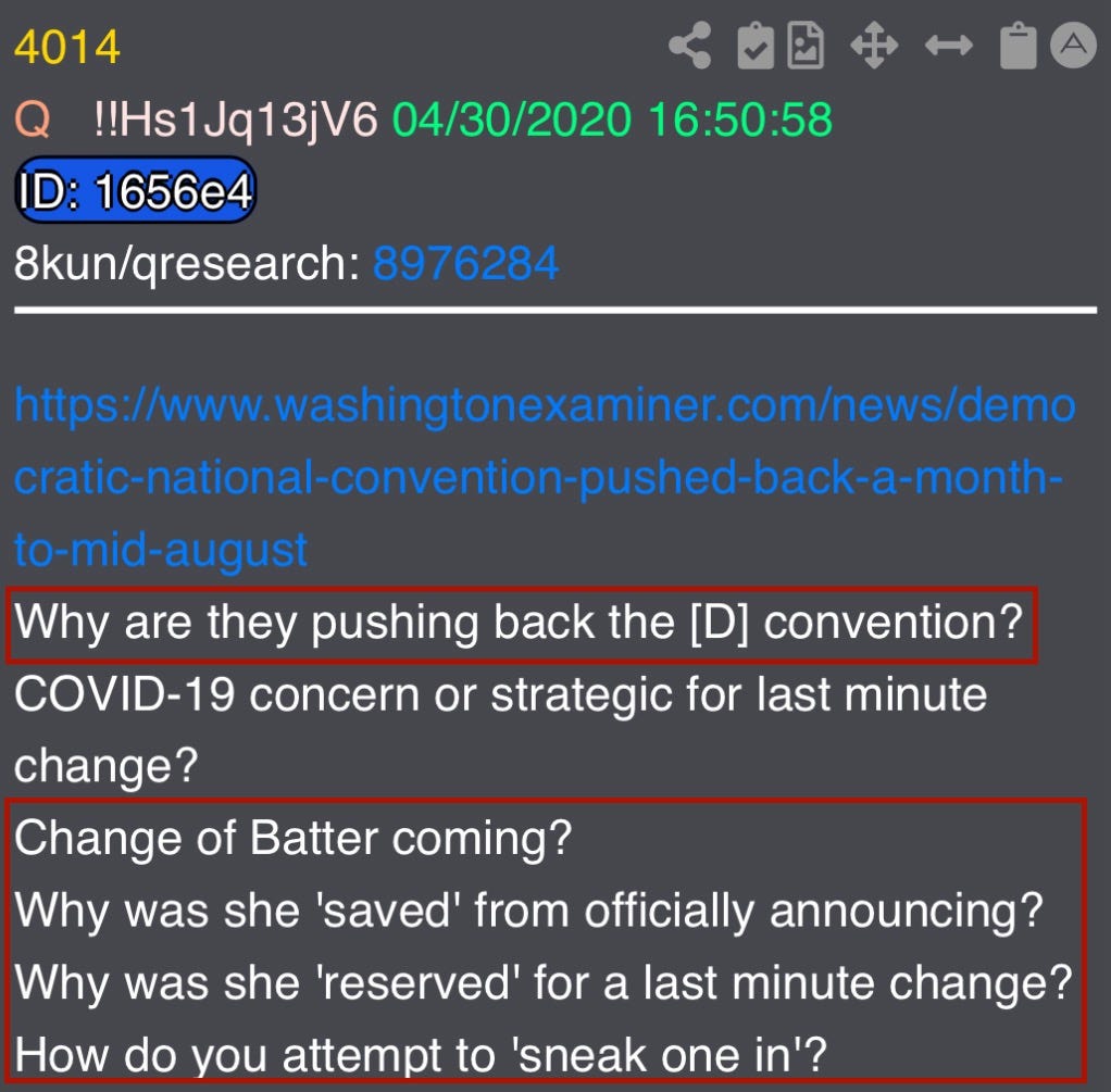 What is even more interesting about this drop is that it mentions COVID, which was kind of the catalyst for Joe’s exit. Beyond that, it is looking more and more like Kamala Harris is going to be challenged at the DNC, and if the nominee ends up becoming HRC, then this drop is going to become arguably the biggest Q-Proof in history.