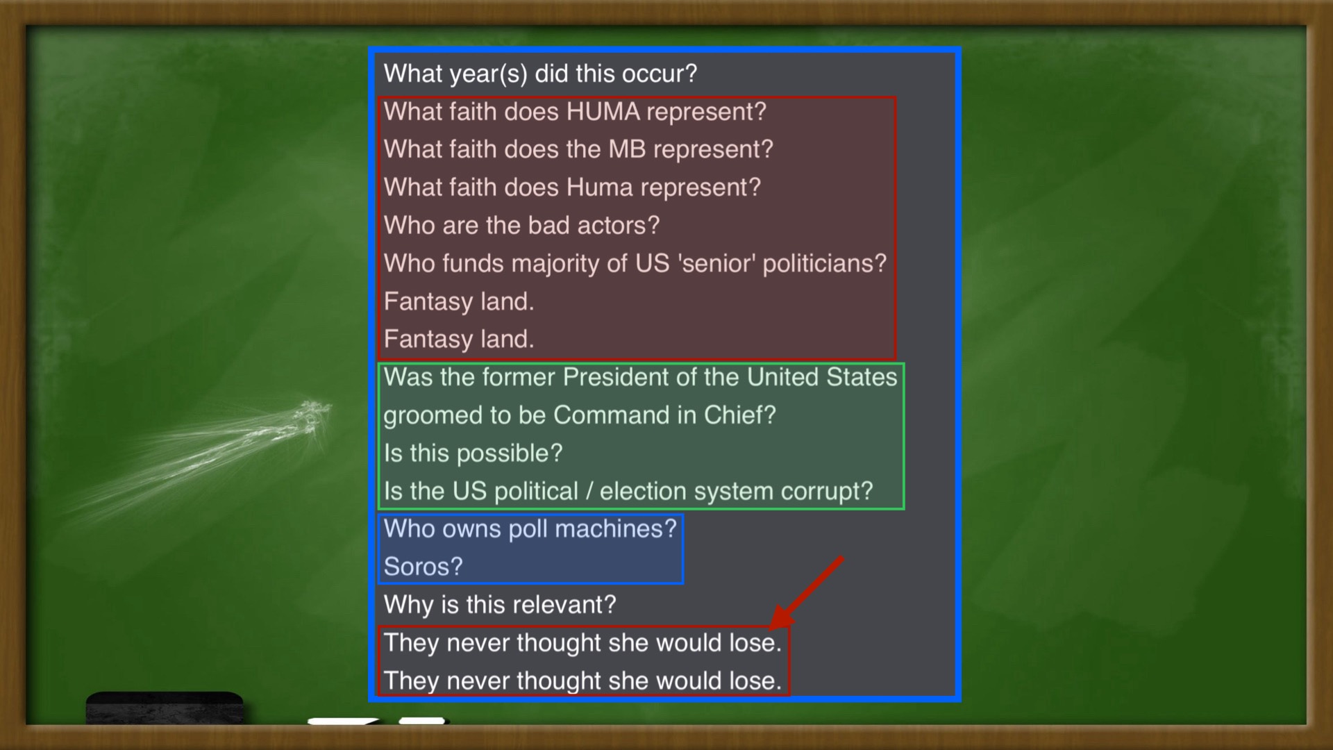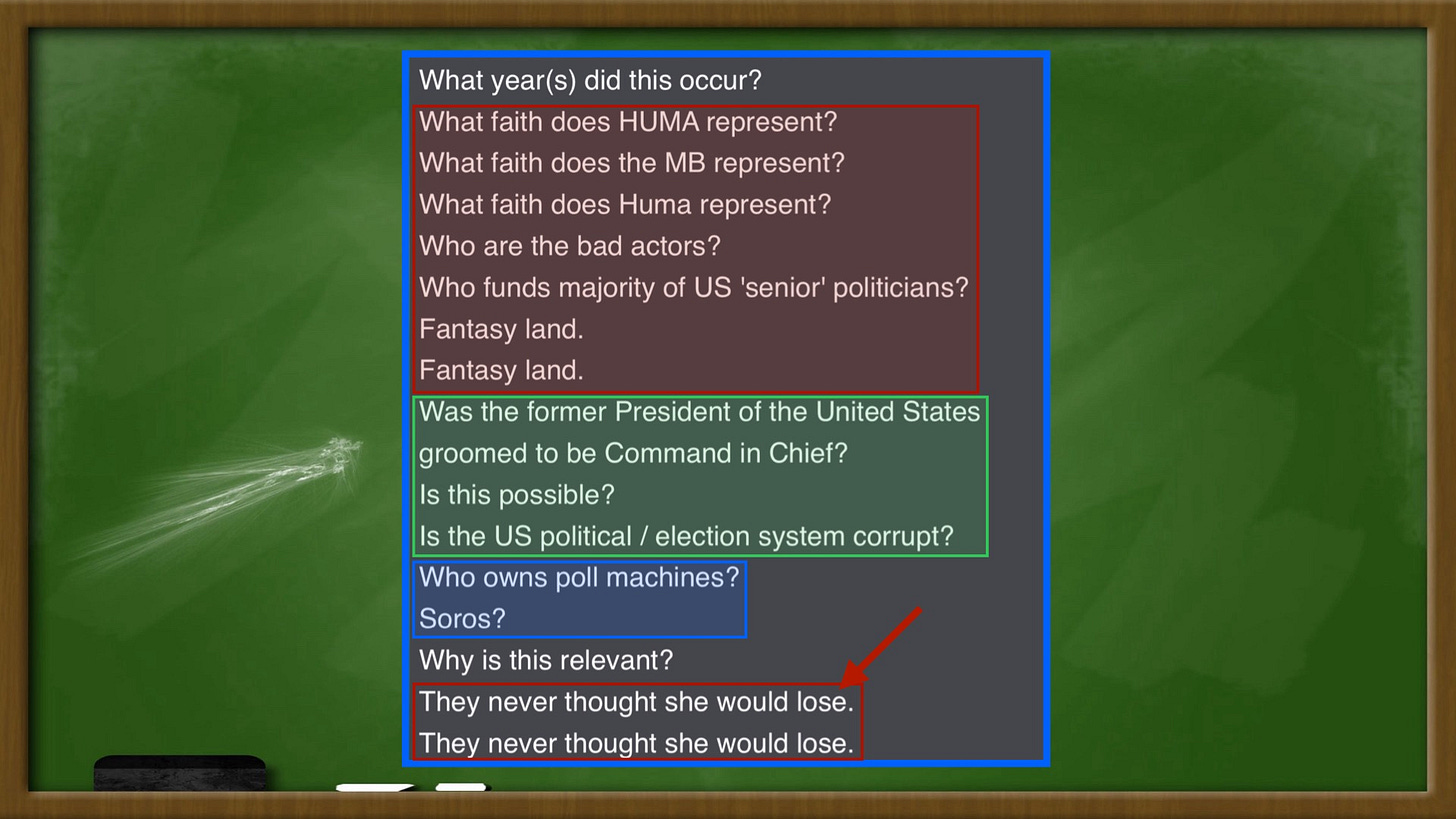 In this section, we see Q ask us which faith HUMA, the MB and Huma (Abedin) represent. The answer isn’t simply “Muslim”. These people are Wahabi Extremists.