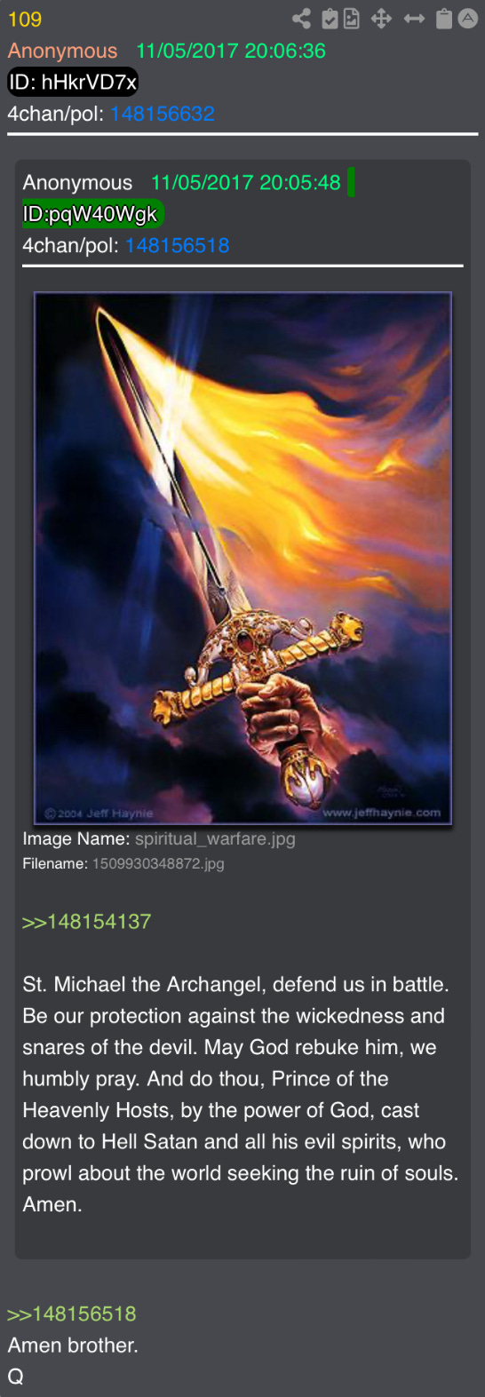 We are then asked to pray, and told that operators are active. Q then reinforces the fact that we are at war, and says “Goodnight BO”.