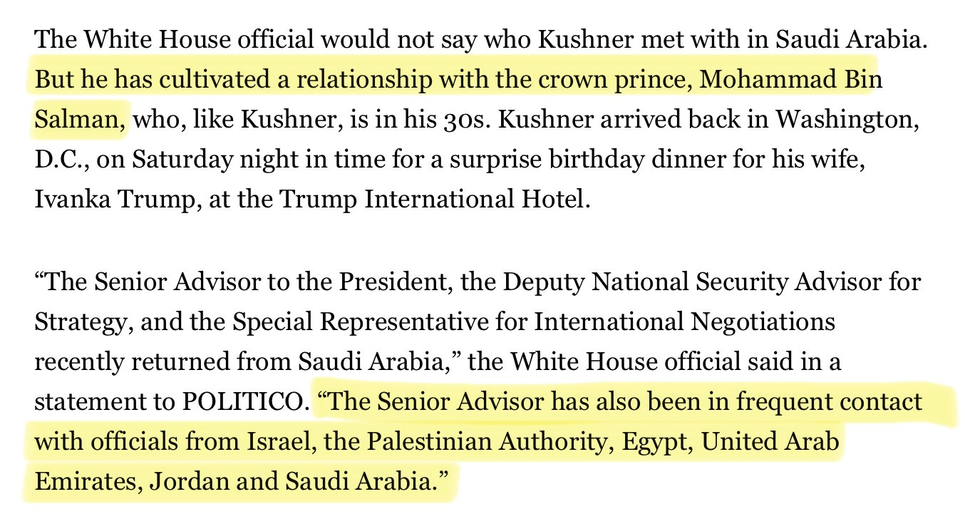 In Oct. 2017, Jared Kushner Took an Unannounced Trip To Saudi Arabia.